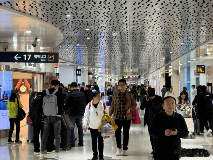 香港机场又变回了往日的神态,拖行李箱的游客排着队,登机播送响个不休,实足看不出三年前那副冷清到生僻的面目。
