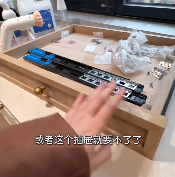 业主要点关心的岛台,更是透顶报废,洗碗机装配完成后,径直挡住独揽的抽屉,已装配的抽屉被动吊销,柜体留住明白轻松陈迹,商家从未提前见知这一想象任意,也未给出任何整改决议。