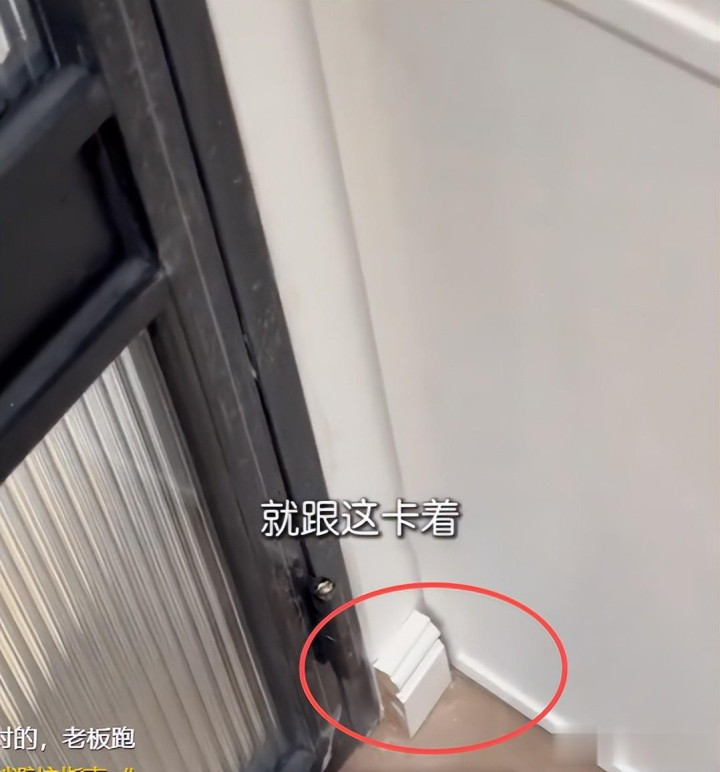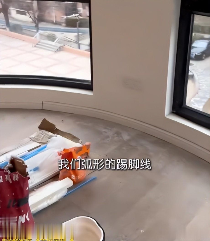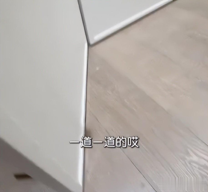 业主前期专门涨价2万元,条目作念弧形踢脚线,商家情愿弃取专用弧形材料,无缝贴合墙面,好意思不雅又耐用,可现场本色是用凡俗直条踢脚线强行掰弯,用胶水和钉子固定。