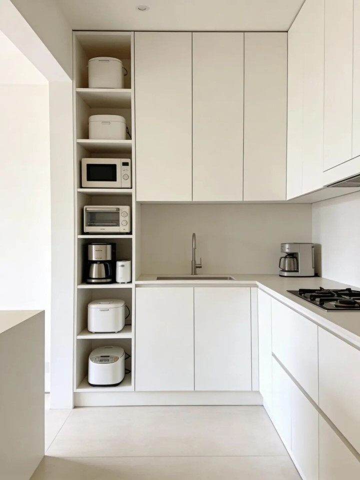 如果装修定制柜子时,给小家电留好了收纳空间,就不会这样乱了。