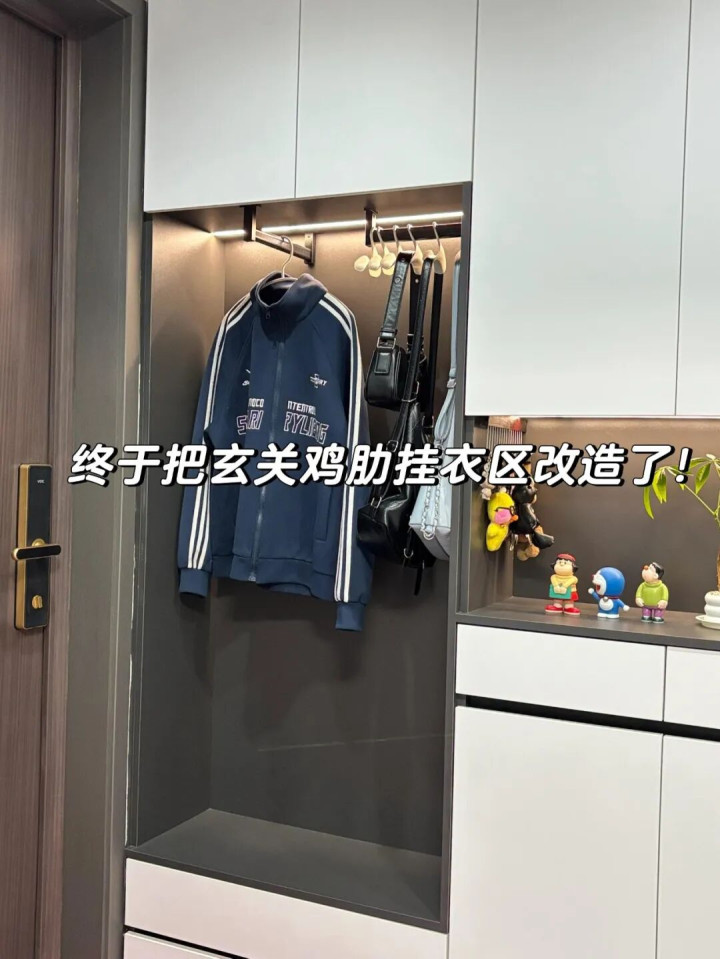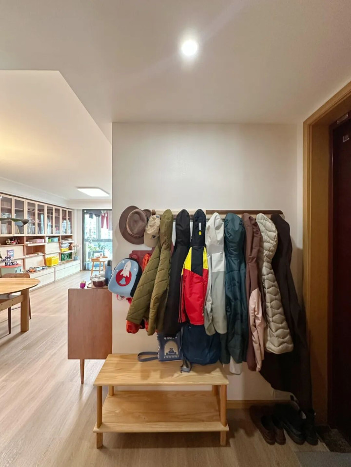 在玄关瞎想一个挂衣区,再搭配换鞋凳,平方进门,外衣、包包、雨伞、次净衣都能挂在这里,换鞋也便捷。