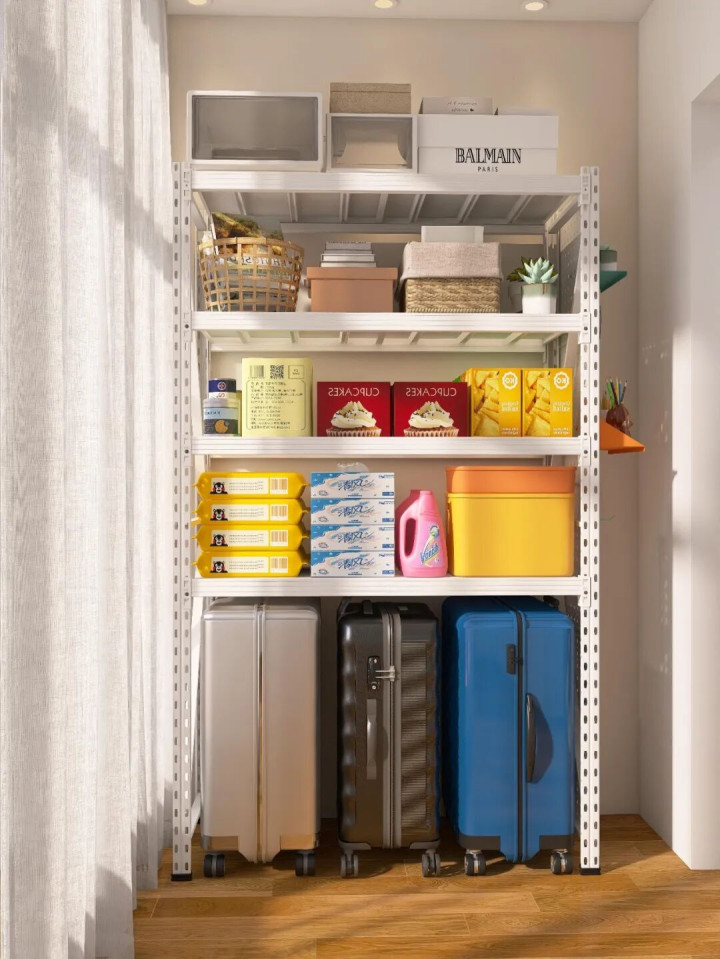 如果依然入住,没预留这个空间的,花几十块钱买个货架,搭个粗造收纳区,不错放行李箱,还能收纳其他物品。