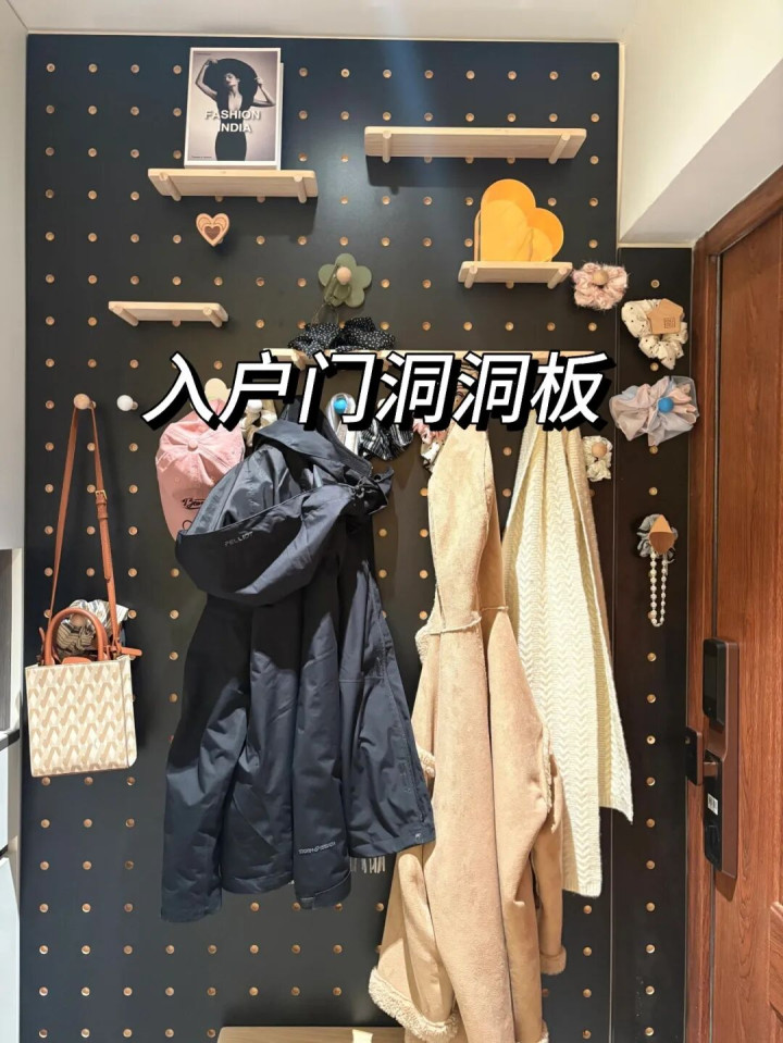 如果玄关空间小,就径直在墙上装洞洞板或挂钩,粗造又省钱。