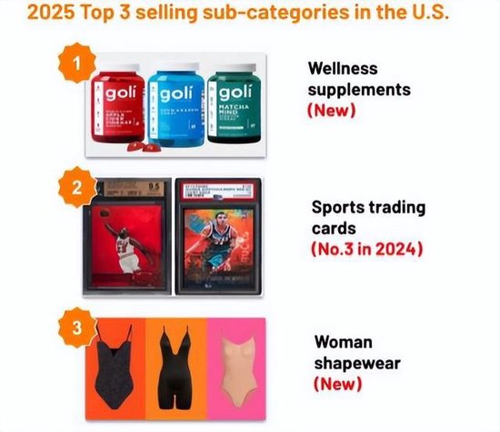具体到不同阛阓,也存在一定的需求互异。比如好意思国阛阓,分解户外和保健是好意思妆个护和女装除外的两大热点品类;这一年里,保健补充剂、球星卡、女性塑身衣是三大最畅销单品。