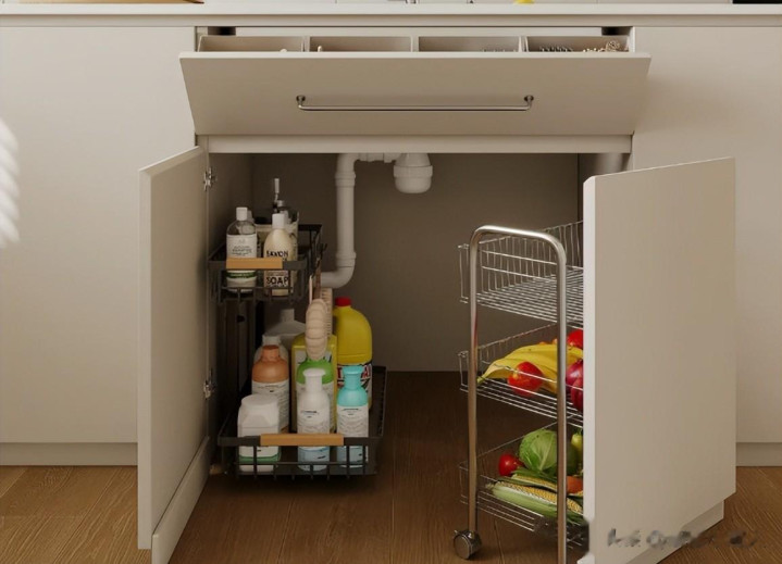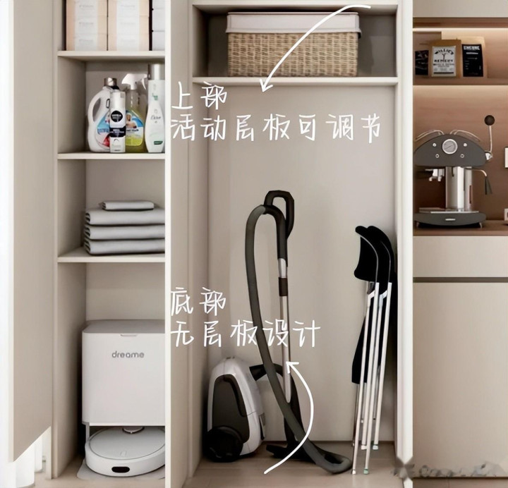提前留个无底柜,什么东西齐能收纳其中,再也无谓放在明面上了,