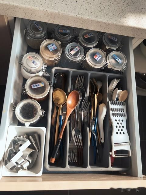 有网友就愚弄了烟谈的位置,收纳了不少厨房物品。