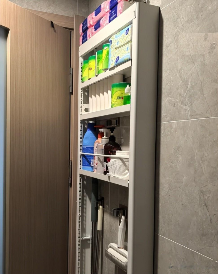 咱们提前测量一下你家门后的距离有多大,然后在网上径直凭证尺寸去购买制品收纳柜,