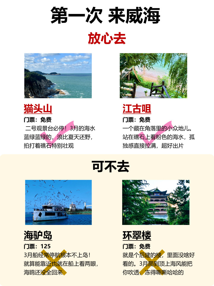 月来威海有3月的玩法,别瞎跑,好多景点玩法齐跟天冷的时刻不不异了,还是要储藏最新版的攻略
