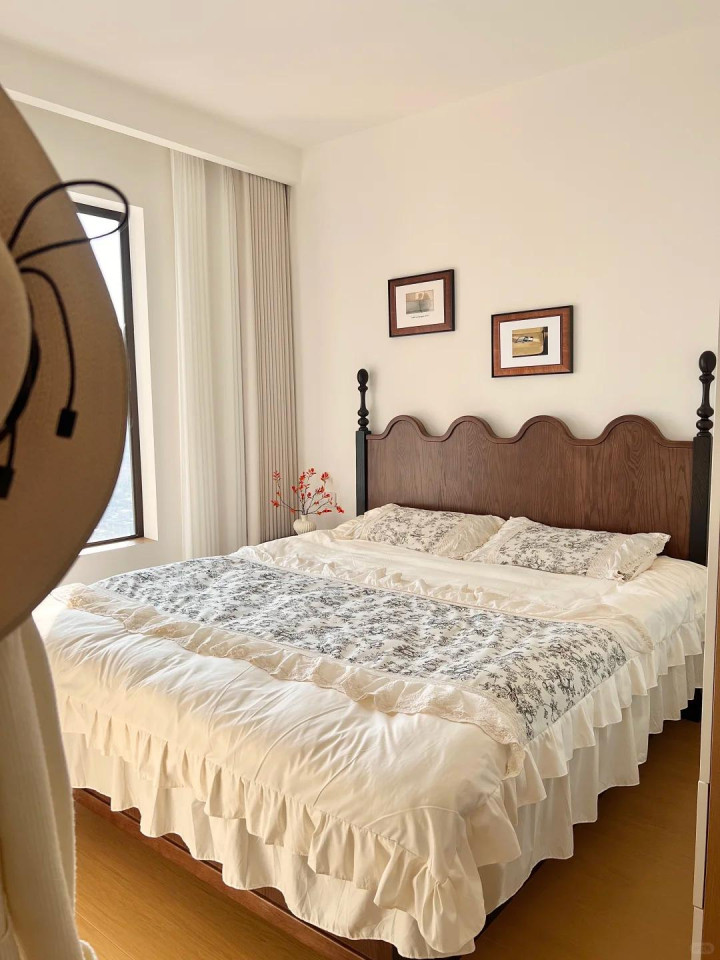 第一个细节,床头不要再执着于大白墙了,我家之前等于刷的大白墙,看着光溜溜的,少量氛围王人莫得,显得至极低价,无论搭什么床品王人出不来高档感。