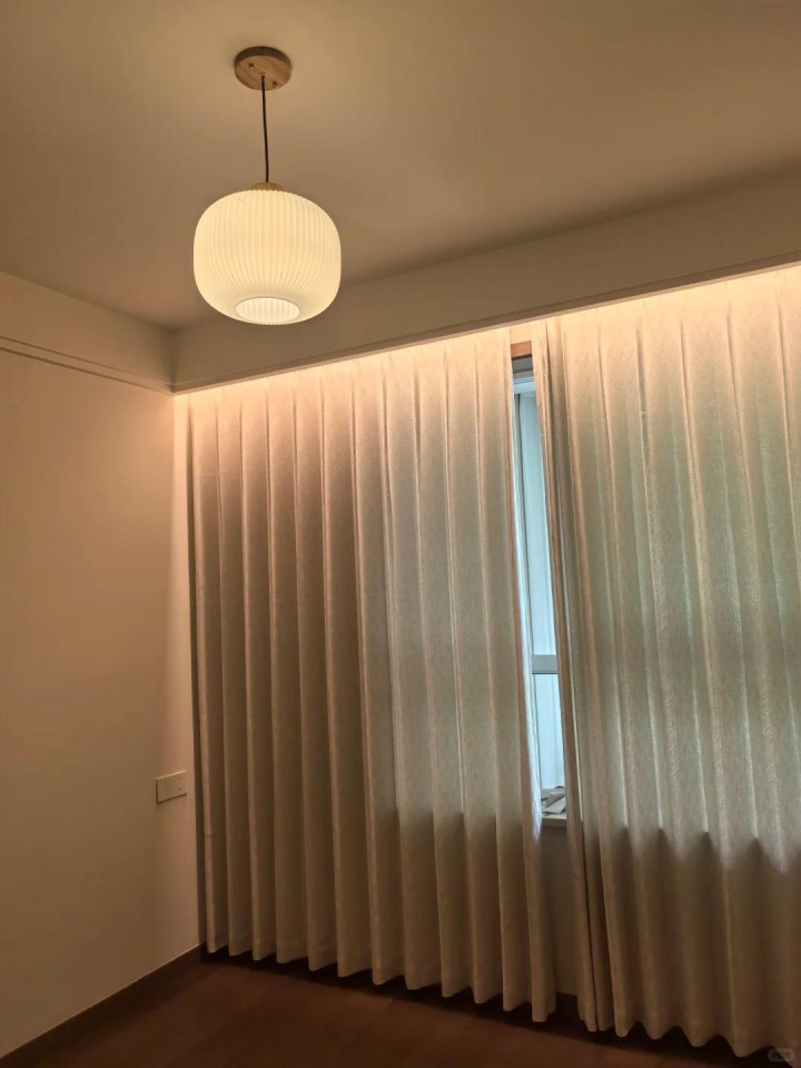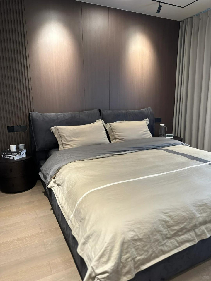 然后再加上一些隐形的灯带,不错移交在床头配景墙,或者是床底或者窗帘盒,作念到见光不见灯,培植整个这个词卧室的氛围感。