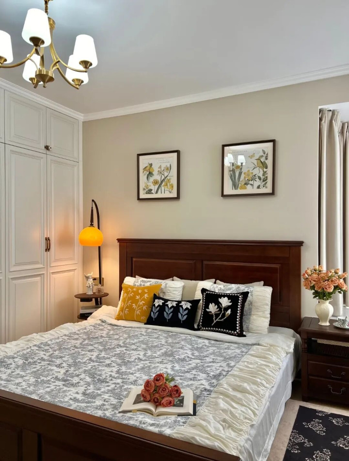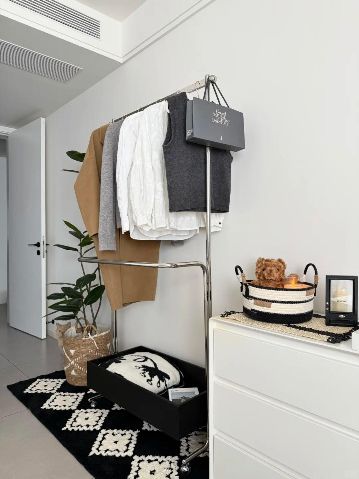 临了一个细节亦然最容易忽略的,等于一定要预留一个临时衣物区。许多东说念主装修的时刻没酌量到,睡觉前换下来的衣裳莫得场所放,每次只可堆在床上,显得整个这个词房间很乱,时辰长远卧室就会越来越乱,根蒂不想收拾。