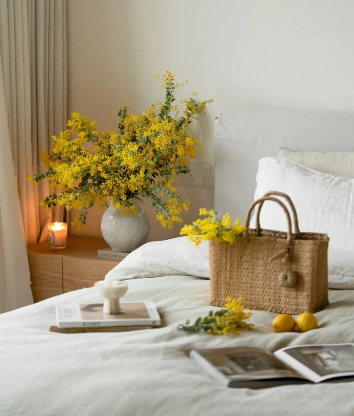 卧室里有两样全能摆件:第一件等于相框,第二个等于植物。尤其是植物,不错培植整个这个词卧室的人命力,但要记取,不要用仿真花代替,怕繁难,不错试试金合欢这么干植,放在卧室一年王人无用管。