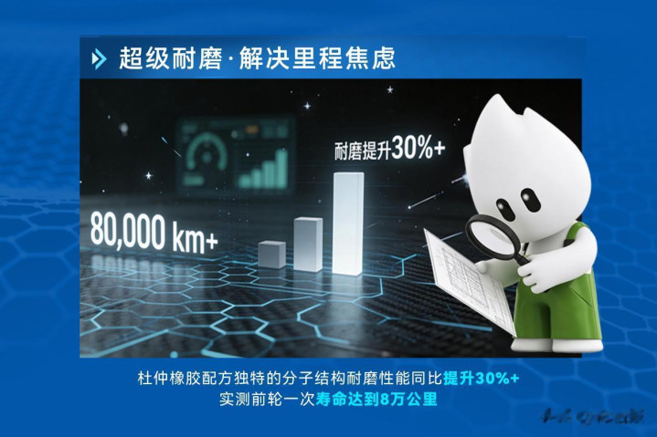 收获于杜仲胶私有的分子链结构,其在常温下能酿成访佛硬质橡胶的网罗,显赫升迁胎面胶料的抗切割和耐疲钝性能。实测数据显露,超等杜仲轮胎耐磨性能同比升迁30%以上,前轮一次寿命平均超8万公里。这一性能直击新动力汽车因车身骄横更大、电机瞬时扭矩输出更强而导致的轮胎磨损加重痛点,快乐飞艇下载为用户达成“更长里程、更少换胎”的切不二价值。
