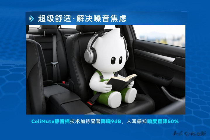 针对电车用户对噪声的严格条款,通用股份在杜仲胶中枢配方基础上,翻新集成CeliMute静音棉技巧,通过高分子聚氨酯海面的吸音特质,可显赫降噪9dB,东说念主耳感知响度直降约50%,全意见为用户复原藏书楼般的静谧驾乘空间。