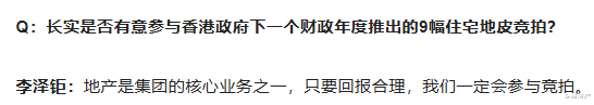 当被问及是否参与香港新一轮9幅住宅用地竞拍时,他给出了斩钉截铁的回答: