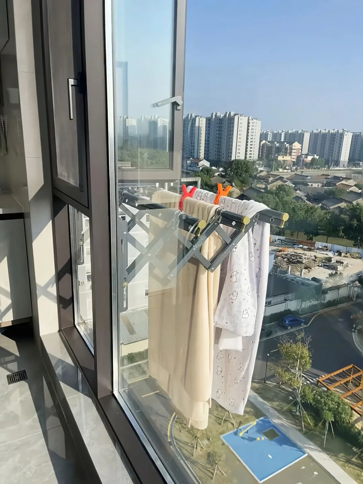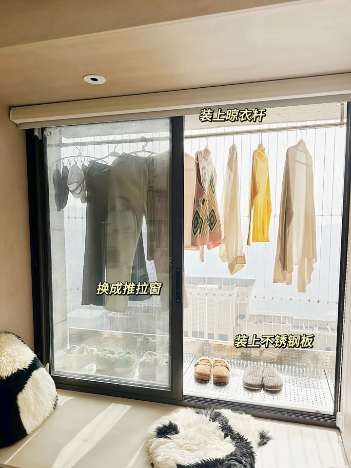 关于住在低层的一又友们来说,窗外装伸缩杆用来晾衣丹心可以,把穿着晾到窗外,不仅管束了空间不及的问题,还能让穿着在阳光下快速干透,竟然个糊口小妙招。