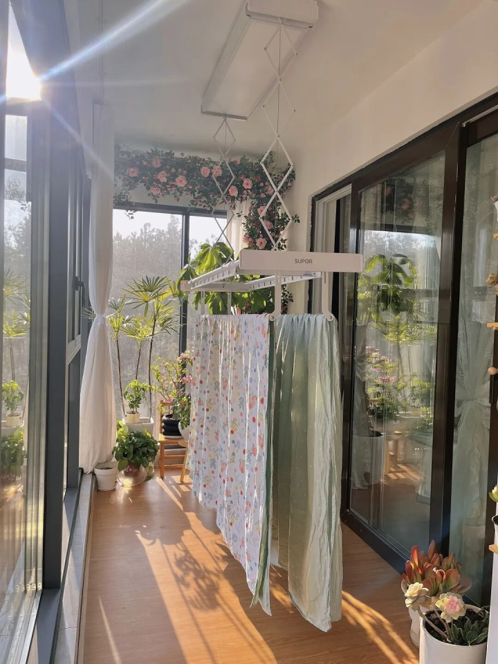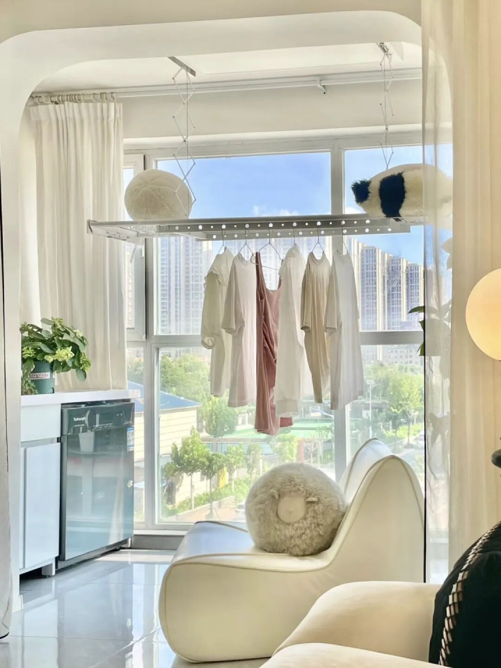 但入住后,你就会发现,阳台晾穿着即是“无限轮回”——前边的穿着还没整理好,背面的穿着也曾悄然上阵,阳台根柢莫得休息的契机。本来功能皆全的阳台,效果变成了“衣物展览馆”,竟然让东说念主无奈。
