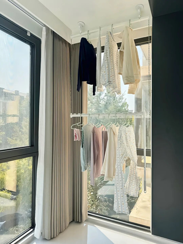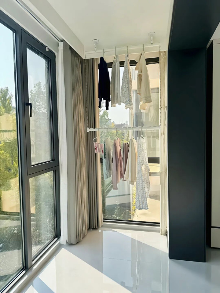 算作一个家居博主,我时时能在工地上发现一些别出机杼的盘算灵感。前段期间,跑施工现场时,我被一位业主的晾衣方式惊艳到了,共享给各人,说不定能给你带来不相通的“晾衣”灵感哦。