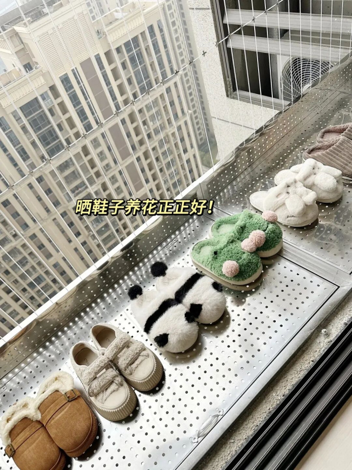 就像上图这位屋主相通,本来闲置的平台被奥秘篡改成了实用的晾衣区。上头晒穿着,底下放鞋子和养花,铁丝网上还可以晾一些小件衣物!